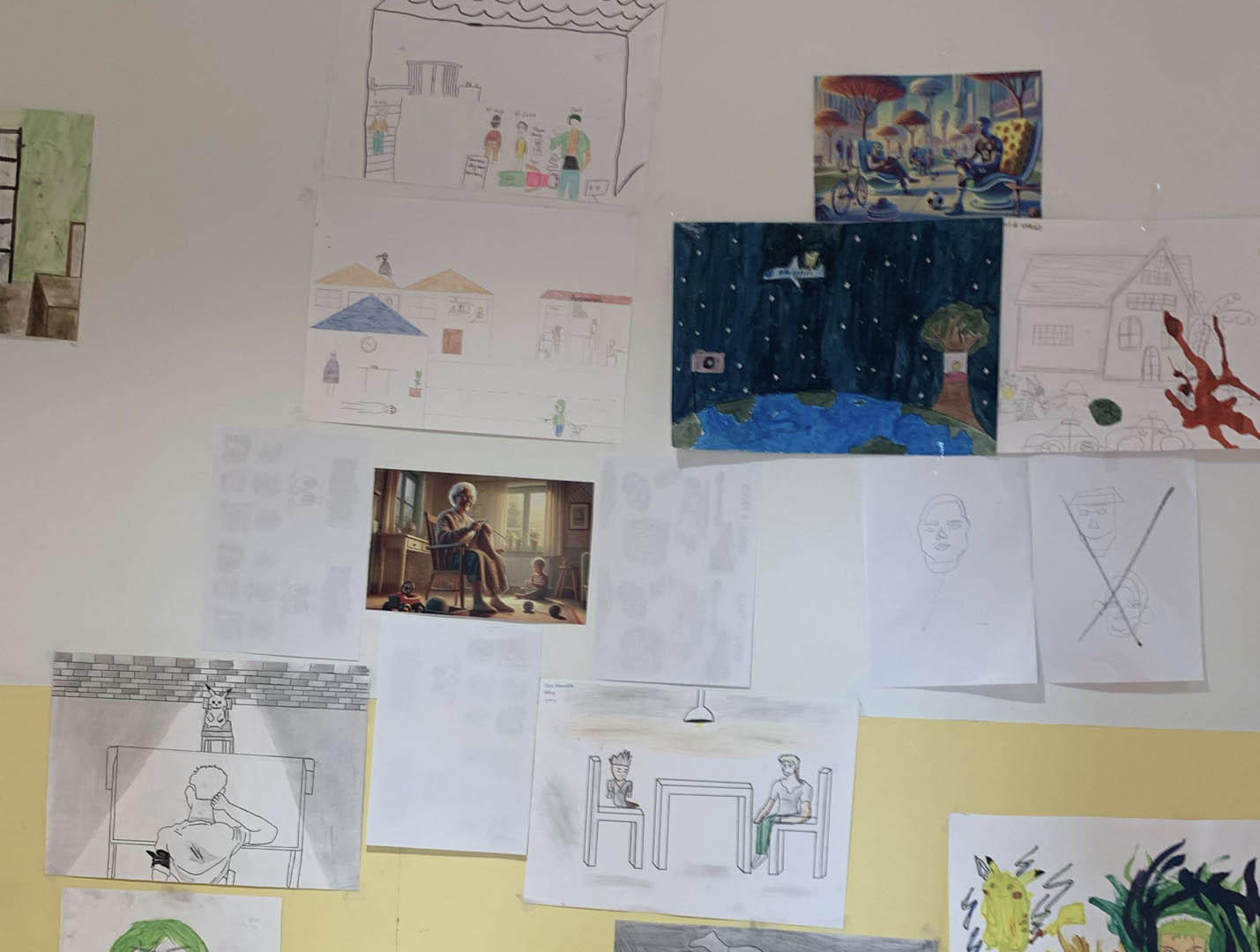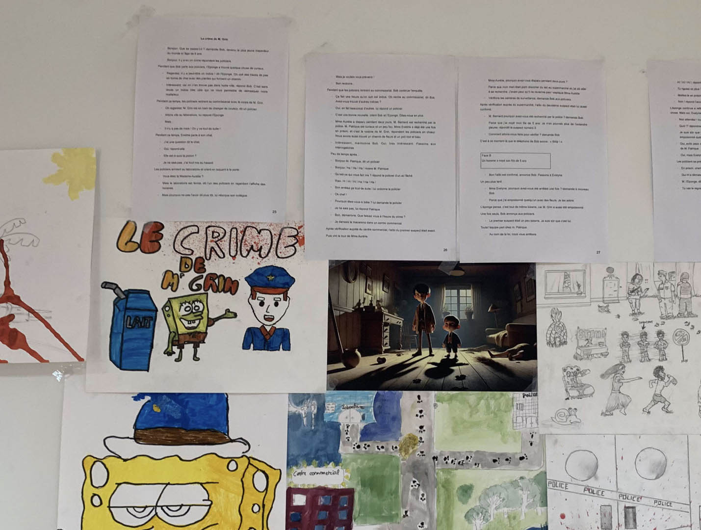 Illustration en 1 image d’une histoire écrite par des élèves de CM2 . Pratique des élèves : dessin, peinture, etc.