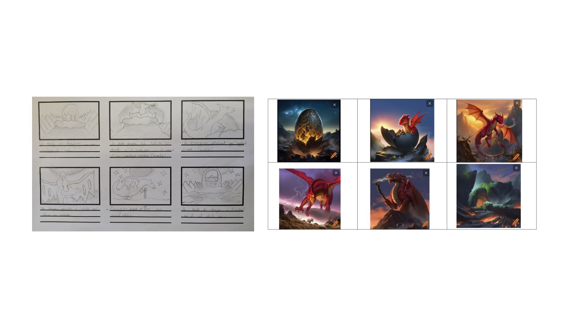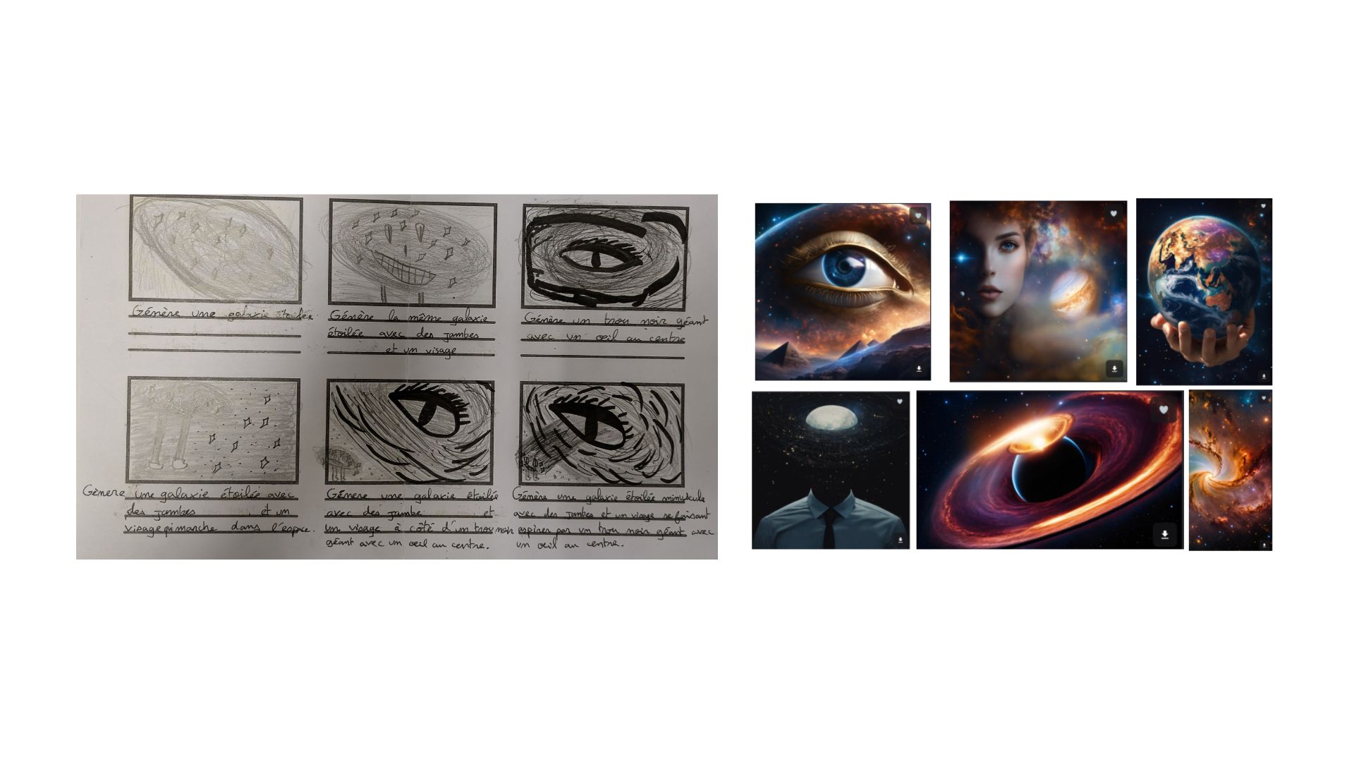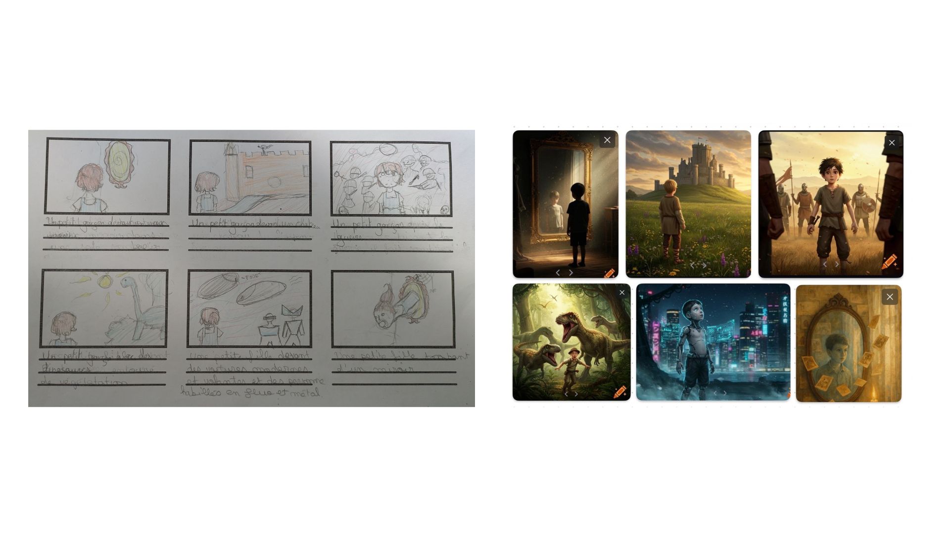 Un second temps a été consacré à l’élaboration des storyboards et à l’écriture des prompts pour générer les images crées.