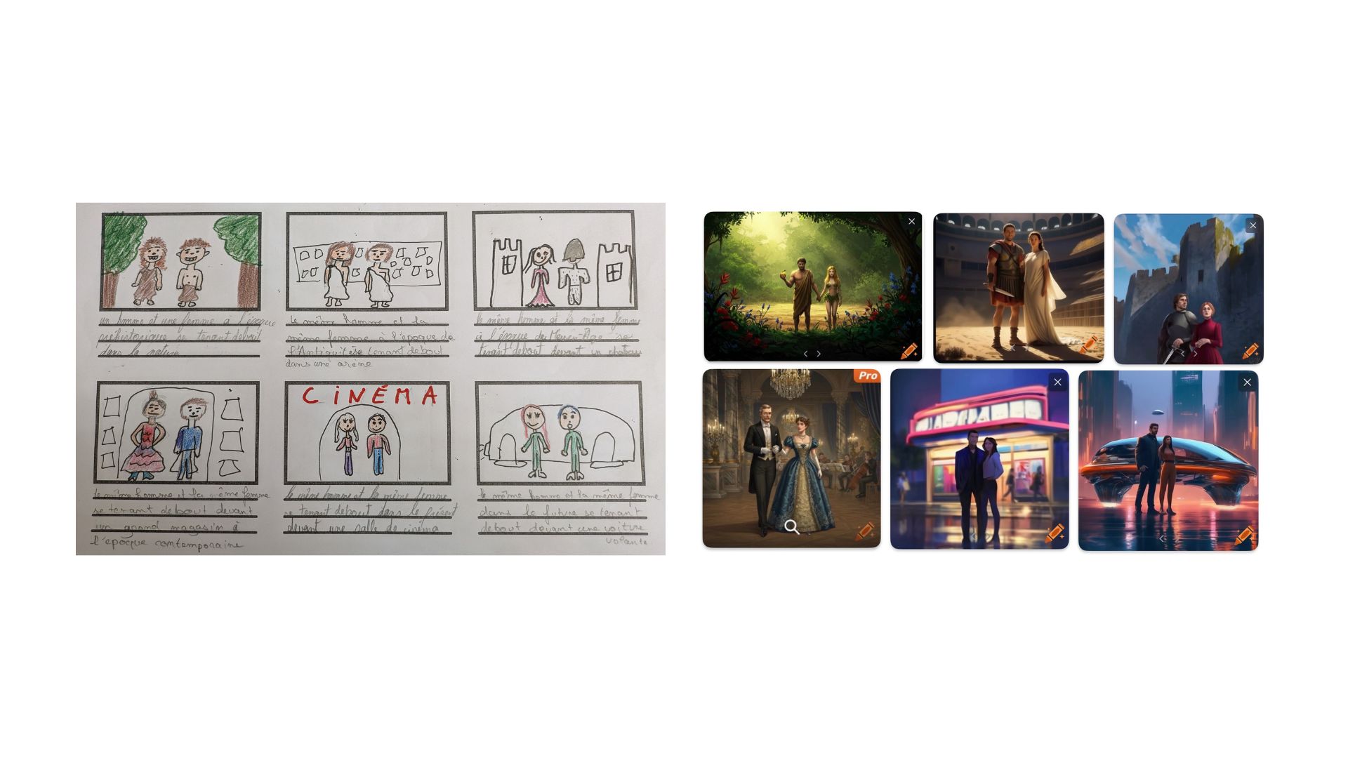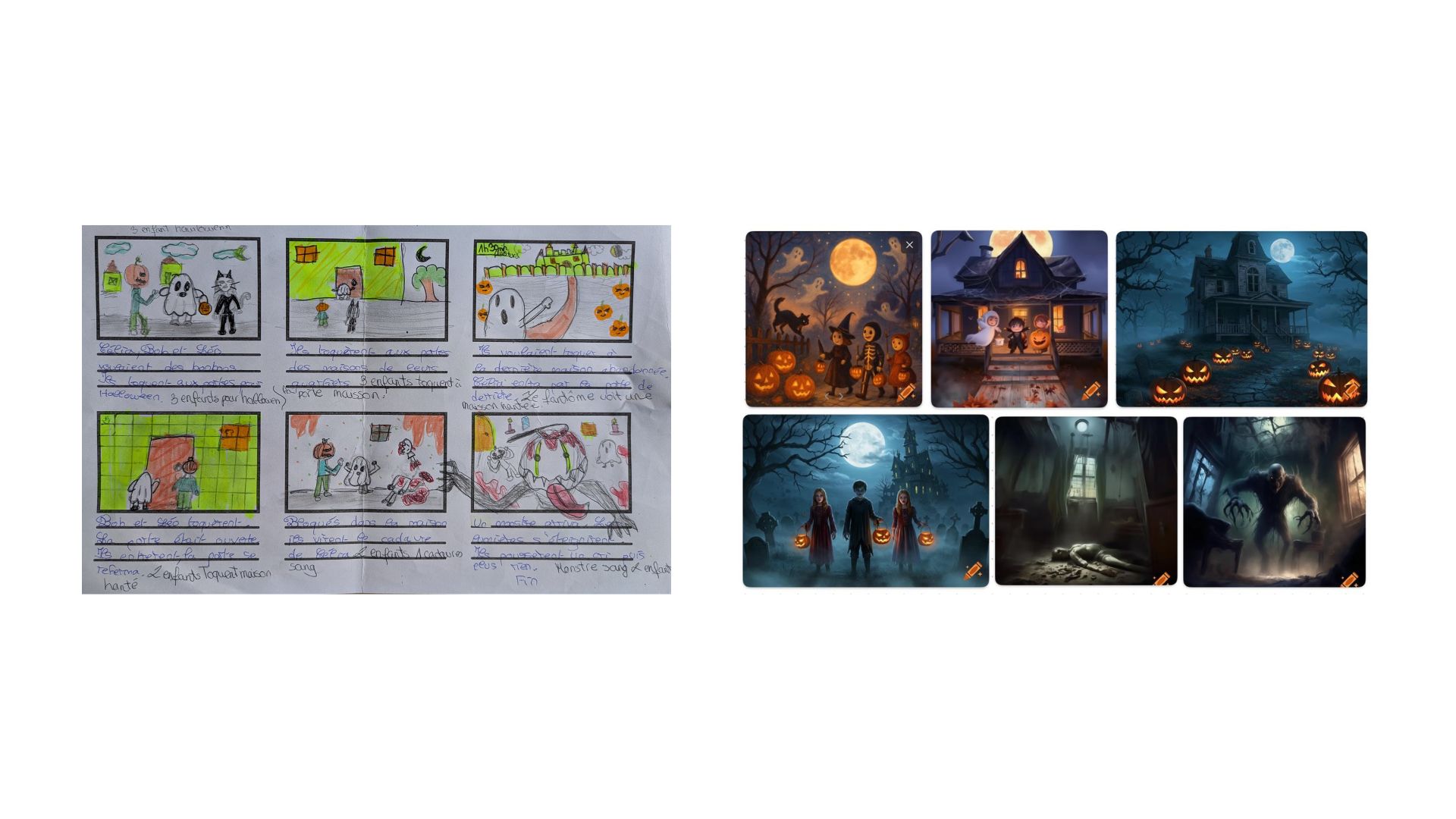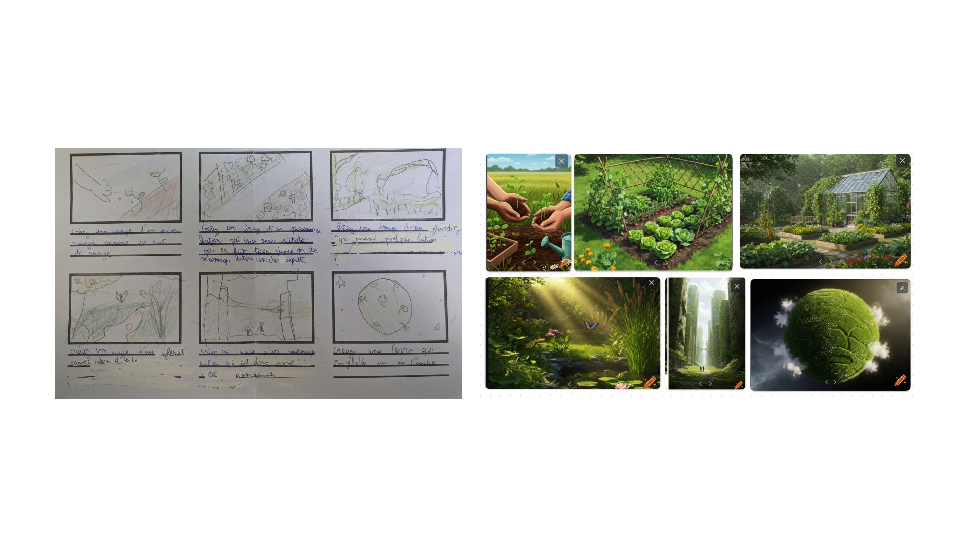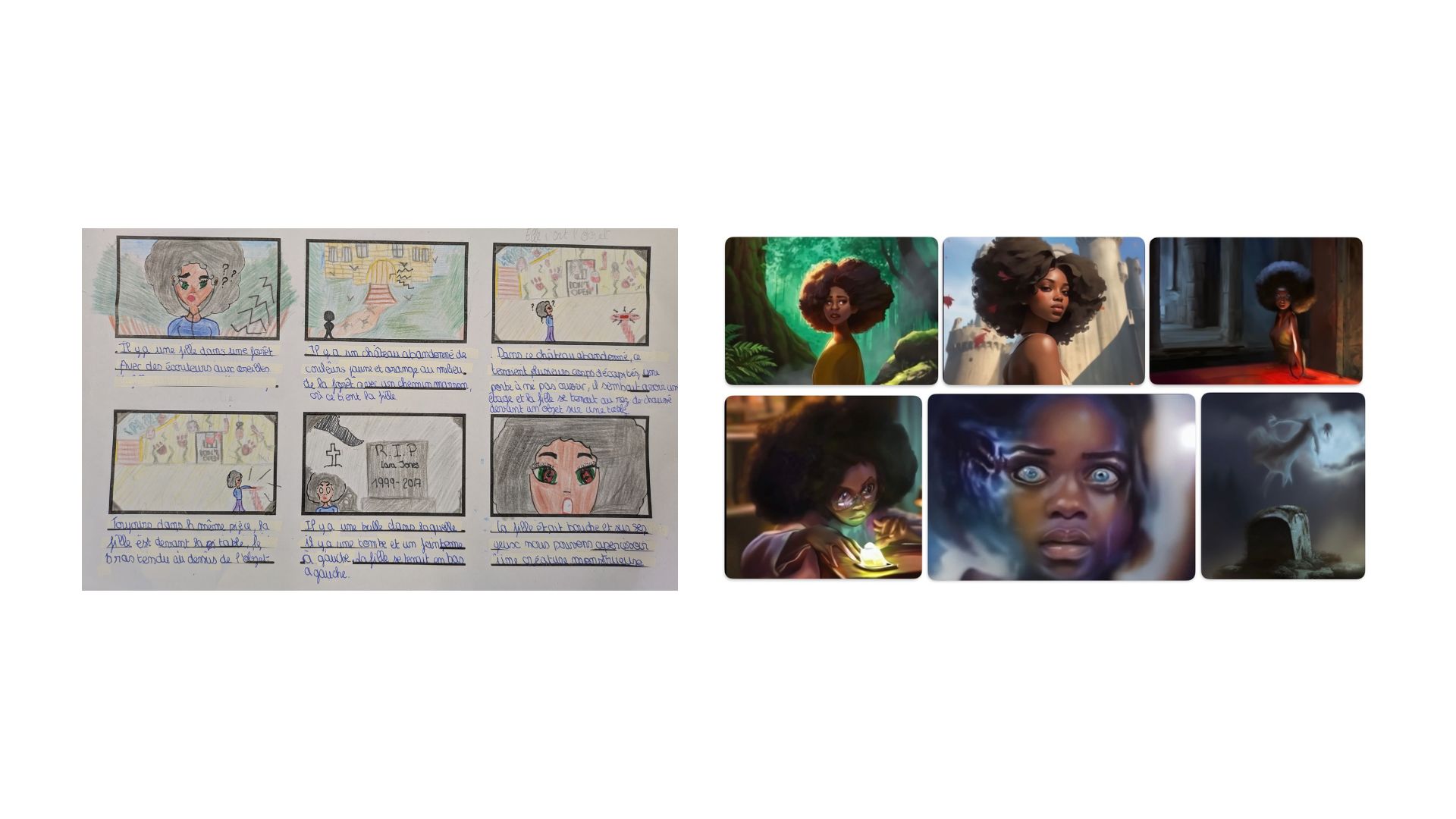 Un second temps a été consacré à l’élaboration des storyboards et à l’écriture des prompts pour générer les images crées.